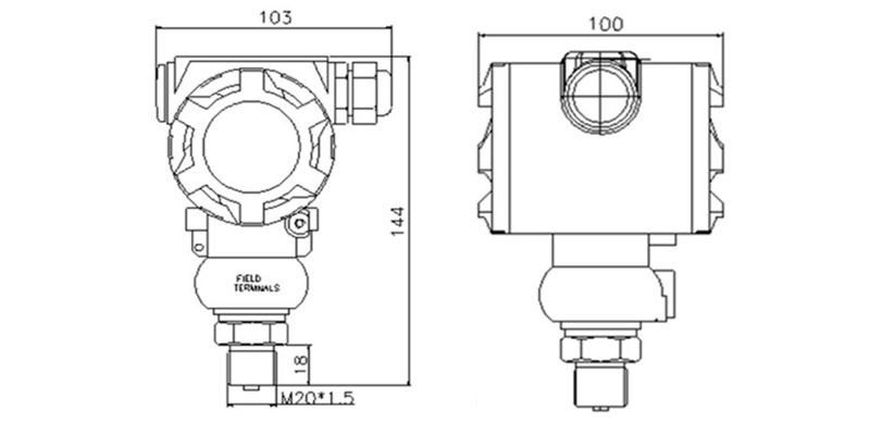 | 工業(yè)型壓力開關(guān)尺寸圖 |