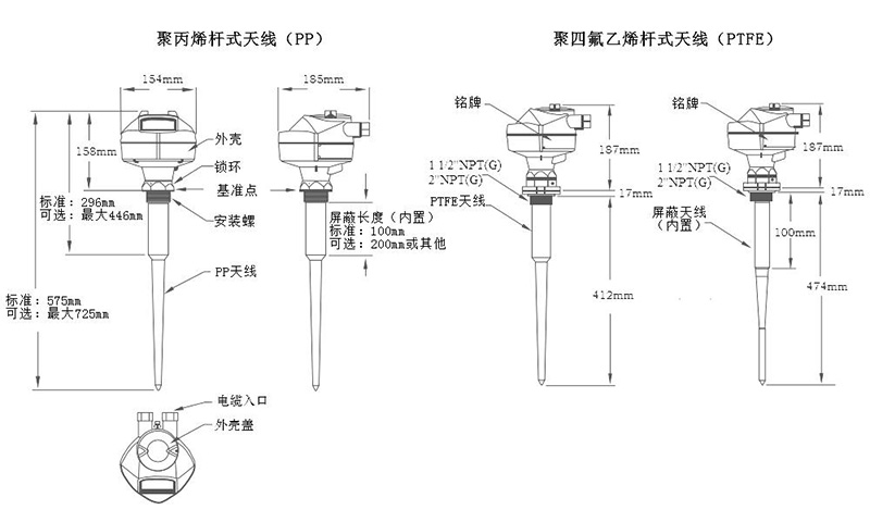 天線類型:PP/PTFE桿式天線