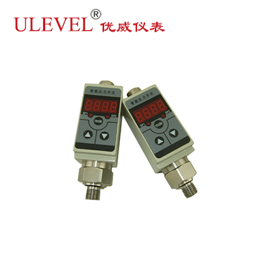 UVPK系列壓力開關(guān)是集壓力測量、顯示、控制與一體的智能數(shù)顯壓力控制產(chǎn)品。該產(chǎn)品為全電子結(jié)構(gòu),前端采用帶隔離膜片的壓阻式壓力傳感器,輸出信號由高精度、低溫漂的放大器放大,傳送至高精度的A/D轉(zhuǎn)換器、換成微處理可以處理的數(shù)字信號,經(jīng)過運算處理的信號控制兩路繼電器,對控制系統(tǒng)壓力進行測量。該產(chǎn)品使用靈活、操作簡單、調(diào)試容易、安全可靠,廣泛應(yīng)用于水電、石油、化工、機械、液壓等行業(yè),對流體介質(zhì)的壓力進行測量和監(jiān)控。 |